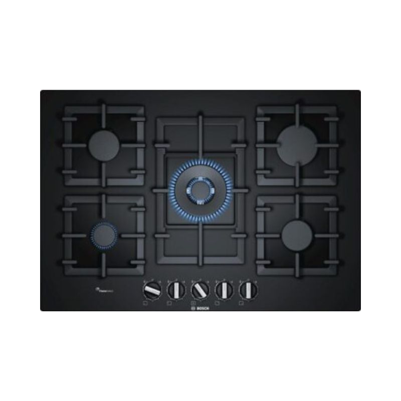 - Bếp gas 5 bếp Bosch PPQ7A6B90 có kích thước 75cm với 5 bếp mang đến sự linh hoạt trong nấu nướng khi bạn có thể dùng cùng lúc cả 5 bếp giúp tiết kiệm thời gian nấu ăn. Bếp được thiết kế lắp đặt âm hiện đại kết hợp mặt kính cường lực bọc bên ngoài và không có khung tạo cảm giác an toàn và chắc chắn.