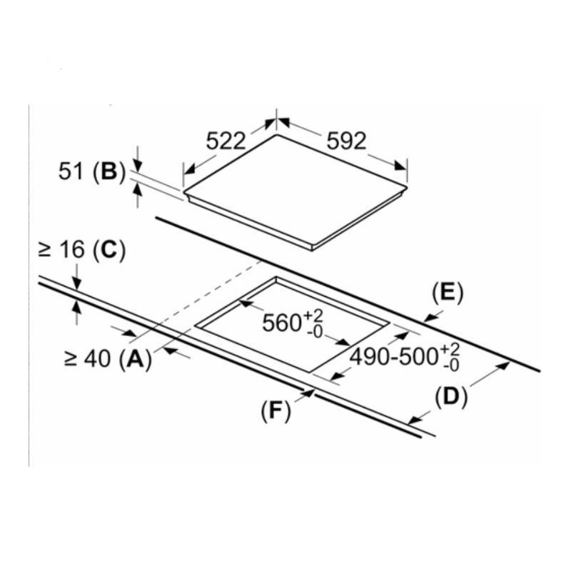 | Kích thước cắt đá (CxRxS) | 51×560-560×490-500mm |