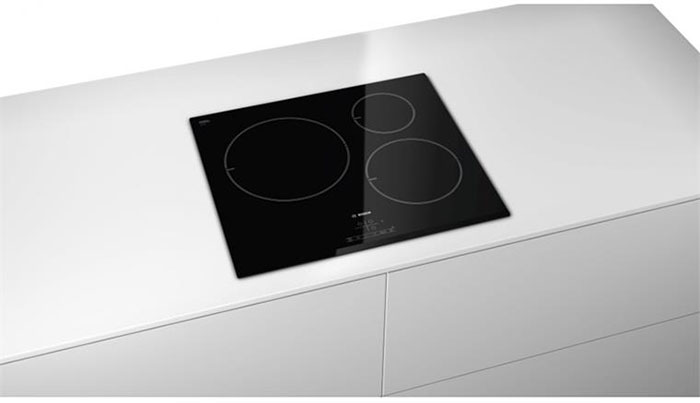 – Bếp từ Bosch PIL611B18E có 3 vùng nấu cảm ứng từ thông minh, mặt kính Schott Ceran bền chắc