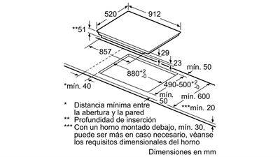 – Kích thước bếp (chiều cao, chiều rộng, chiều sâu): 51 x 912 x 520 mm
