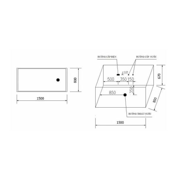 – Kích thước (DxRxC): 1500x800x670mm
