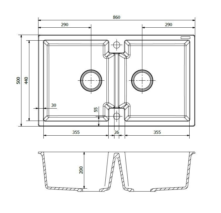 – Kích thước bồn RxS(mm): 355×440+355×440