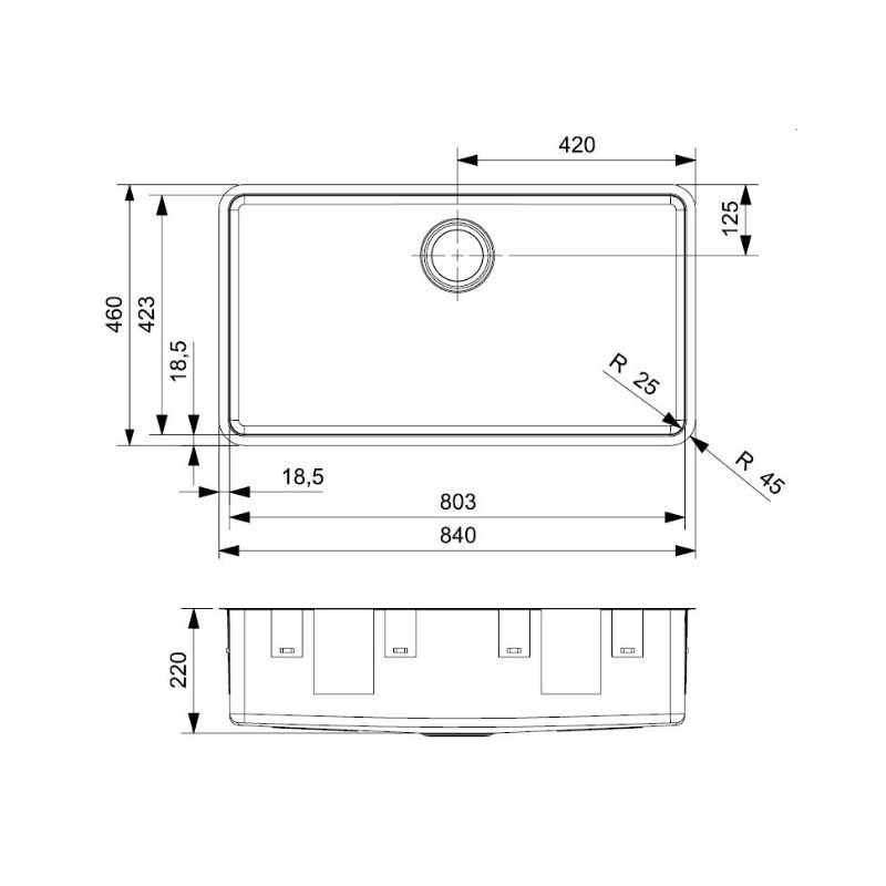 Thông số kỹ thuật của chậu rửa bát inox 1 hố Reginox OHIO HMH.R15766