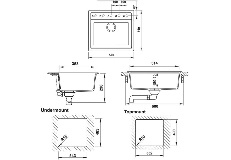 - Lắp nổi (DxR)mm: (552 x 490)mm