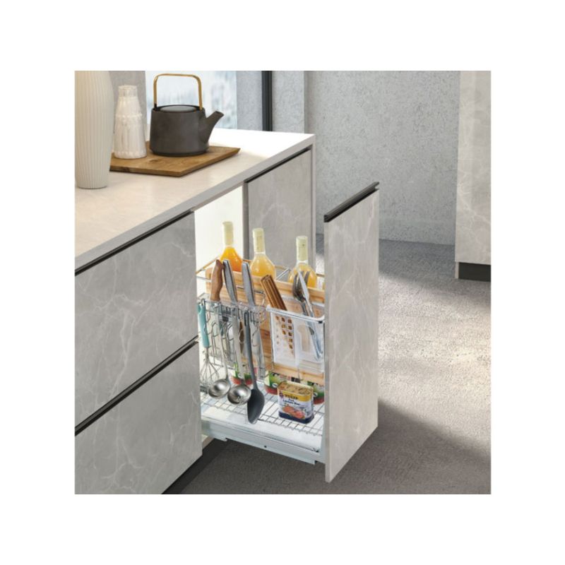 - Giá đựng thiết kế ray âm giảm chấn giúp kéo ra êm ái. Thiết bị có độ rộng cánh 250mm với chiều rộng là 286mm, chiều sâu là 470mm và cao 465mm.