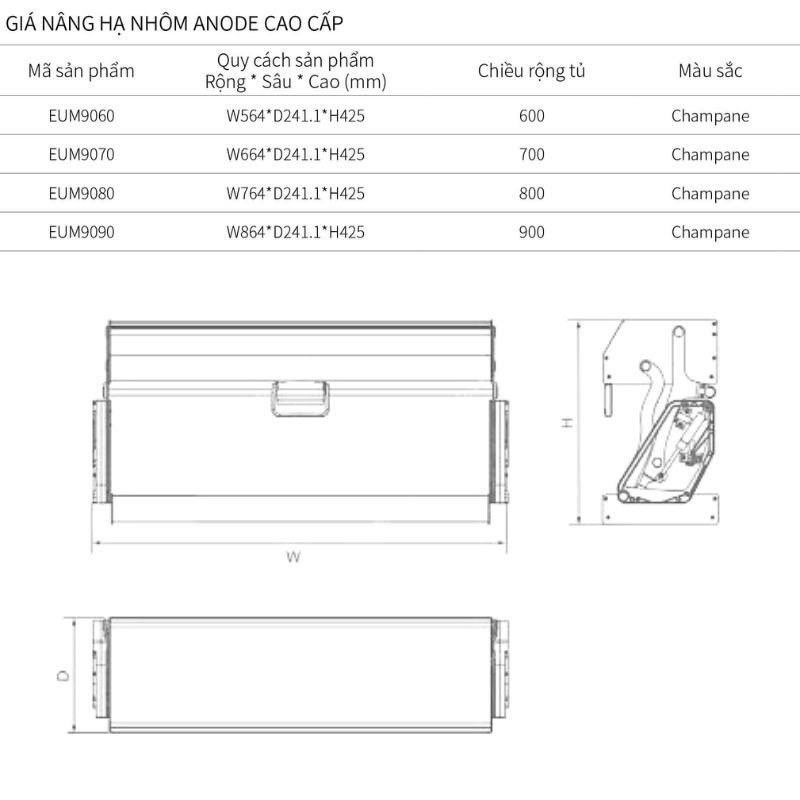 Là giải pháp hoàn hảo cho việc tối ưu hóa không gian và tiện ích trong tủ bếp, Giá nâng hạ nhôm cao cấp EUM9060 không chỉ mang lại sự tiện lợi mà còn tạo điểm nhấn về tính thẩm mỹ. Với khả năng nâng hạ mềm mại và độ chắc chắn của chất liệu nhôm chất lượng, sản phẩm này giúp bạn dễ dàng truy cập và sắp xếp các vật dụng trong tủ bếp một cách thuận tiện. Thiết kế linh hoạt và đẳng cấp của EUM9060 không chỉ tăng cường chức năng sử dụng mà còn làm tăng giá trị thẩm mỹ cho không gian bếp của bạn. Với Giá nâng hạ nhôm cao cấp EUM9060, bạn sẽ trải nghiệm sự tiện ích và sang trọng trong việc quản lý không gian lưu trữ bếp của mình.