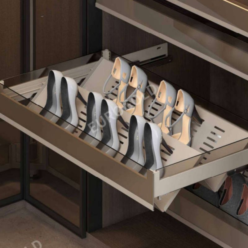 - Kệ để giày lựa chọn lý tưởng cho tủ quần áo cửa trượt lùa hoặc dùng bản lề cánh tủ giảm chấn.