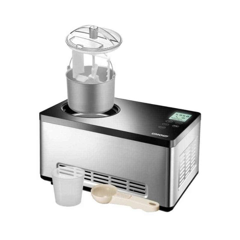 - Nắp nhựa trong suốt tiện dụng; Máy Làm Kem Unold 48845 Gusto được thiết kế đi kèm với một nắp nhựa trong suốt đóng mở tiện dụng. Vì vậy người dùng có thể quan sát được toàn bộ quá trình làm kem bên trong máy. Vỏ ngoài của máy được làm bằng inox có khả năng chống xước, chịu nhiệt cao và va đập. Các bộ phận của máy có thể tháo lắp tiện dụng khi vệ sinh sau mỗi lần dùng.