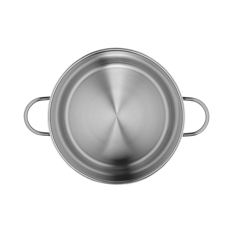 - Đáy nồi luộc gà WMF gồm 3 lớp giúp hấp thụ nhiệt tốt và phân bố nhiệt đều ra xung quanh giúp thực phẩm được truyền nhiệt đều từ dưới lên trên, thực phẩm chín nhanh, tiết kiệm thời gian và nhiên liệu.