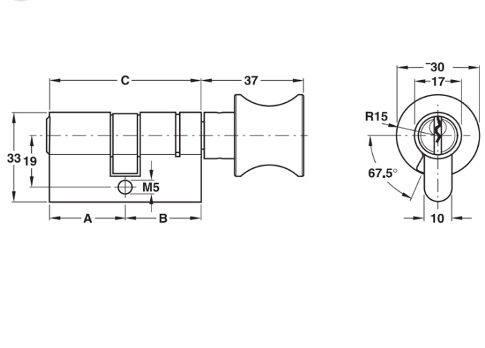 Thông số kĩ thuật của ruột khóa 1 đầu chìa, 1 đầu vặn đầu Hafele 916.96.664