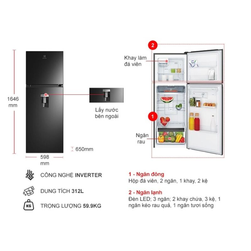 Tủ Lạnh 2 cánh Inverter 312 Lít Electrolux ETB3440M-H
