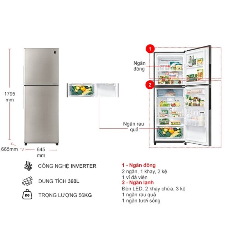 - Tủ lạnh Sharp ngăn đá trên thiết kế sang trọng, nâng tầm không gian sống