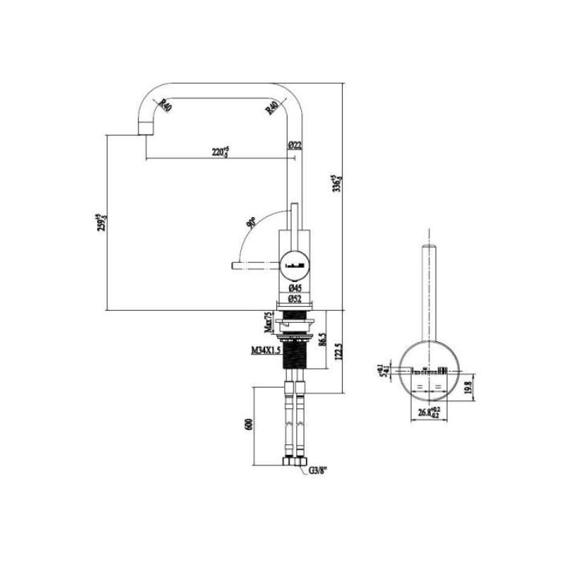 Thông số kỹ thuật của vòi rửa bát nóng lạnh Reginox Crystal R30523
